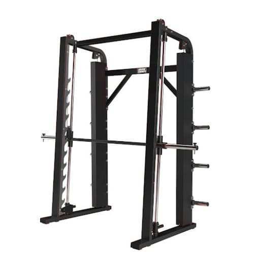 This machine couples free‑weight movement with guided stability by offering a vertical bar path and generous weight‑plate capacity for compound strength lifts.